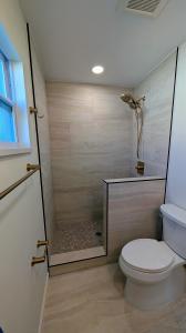 In addition to structural and systems work, the reconstruction included design-driven upgrades that reshaped the home's functionality and curb appeal. The roofline was redesigned to create a covered front entryway and screen enclosure, and the kitchen was fully redesigned with waterfall quartz countertops.